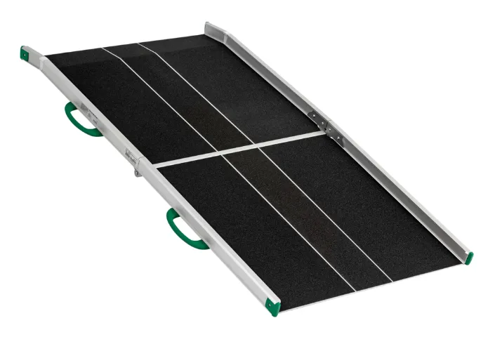 Handig op te vouwen om het in de auto te plaatsen of voor opslag. De oprit heeft een antislip oppervlak om meer veiligheid te bieden voor zowel de gebruiker als de zorgverlener. Goed geschikt voor scooters en elektrische rolstoelen. Heeft minder ruimte nodig voor opslag dan gewone oprijplaten.