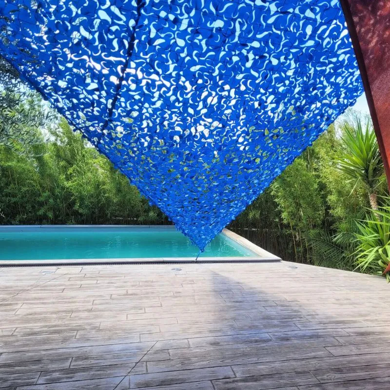 Dit blauwe driehoekige camouflagenet is het perfecte accessoire om een uniek tintje aan je ruimte te geven. Het is ontworpen voor zowel binnen- als buitendecoratie en biedt een geweldige oplossing om schaduw te creƫren, bescherming te bieden tegen nieuwsgierige blikken of een speciale sfeer toe te voegen aan je tuin, terras of evenement. De levendige blauwe kleur valt op en biedt tegelijkertijd elegante discretie. Dit camouflagenet is stevig en gemakkelijk te installeren en is ideaal om je omgeving een persoonlijk tintje te geven en tegelijkertijd te genieten van optimale bescherming.