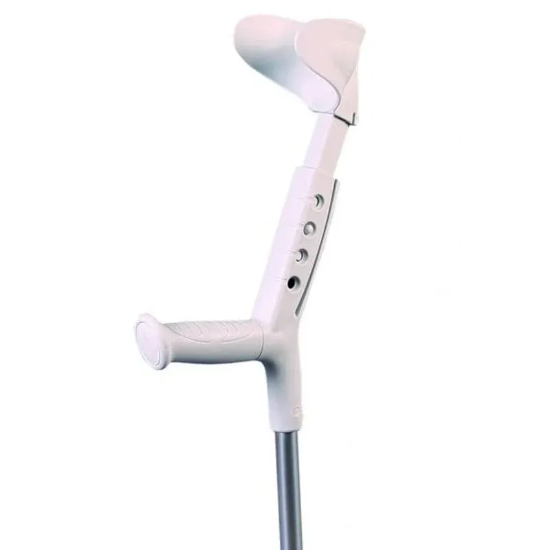 Lichtgewicht elleboogkruk met dicht manchet. Verkrijgbaar per stuk. Kleur grijs.