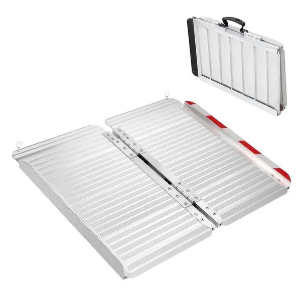 Dankzij de totale binnen breedte van 83,5 cm zijn deze lichtgewicht en extra brede oprijplaten ideaal voor de bredere rolstoelen en scootmobielen maar bieden de rolstoelgebruikers ook meer bewegingsvrijheid op de oprijplaat. De oprijplaat is eenvoudig in breedte opvouwbaar, is uitgerust met een handvat aan de zijkant en kan wanneer opgevouwen secuur vastgemaakt worden om te verzekeren dat de oprijplaat niet ongewild weer openvouwt. Dit maakt de oprijplaat makkelijk om mee te nemen.