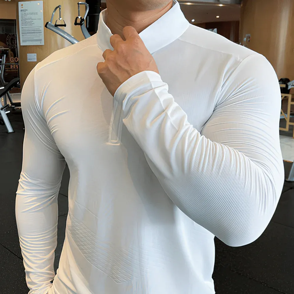 Het FITNESS ZIP shirt is ontworpen voor de actieve man die stijl en functionaliteit zoekt. Dit shirt met rits biedt optimale bewegingsvrijheid en ademend vermogen, ideaal voor intensieve fitnesssessies of dagelijkse activiteiten.