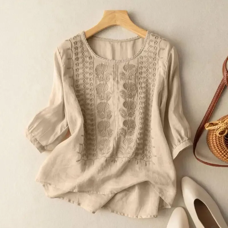 De FLORIANA blouse brengt een vleugje bohemian charme naar je garderobe met haar sierlijke borduursels en luchtige pasvorm. Deze blouse is ideaal voor zonnige dagen, citytrips of momenten waarop je comfort en stijl perfect wilt combineren. Gemaakt van een ademende stof en ontworpen in een relaxed silhouet dat moeiteloos met je meebeweegt.