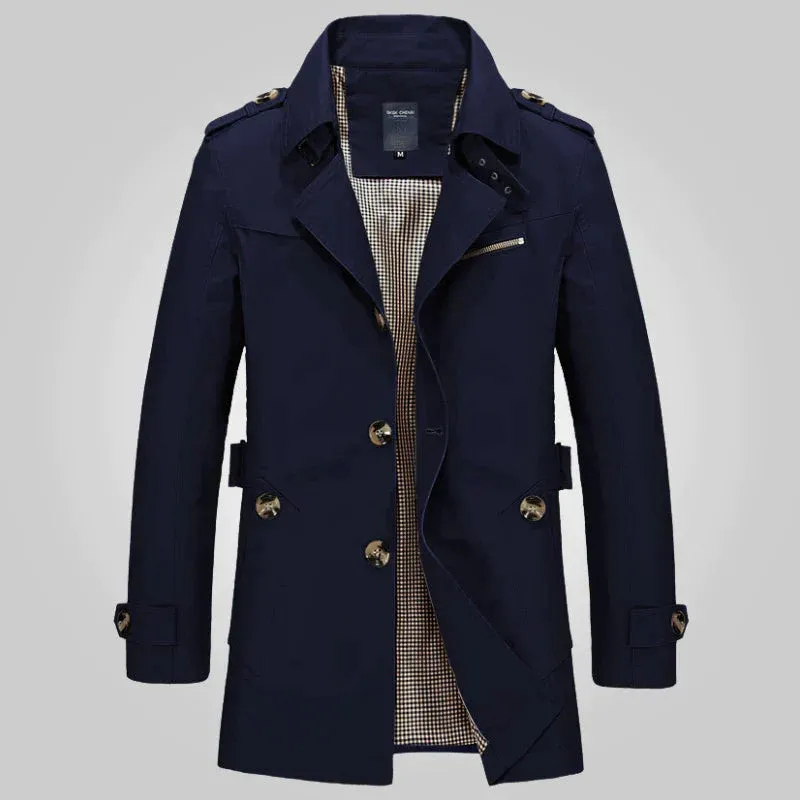De JULIAN trenchcoat is de perfecte jas voor mannen die een combinatie van elegantie, comfort en bescherming tegen het weer zoeken, ideaal voor zowel formele als casual gelegenheden.