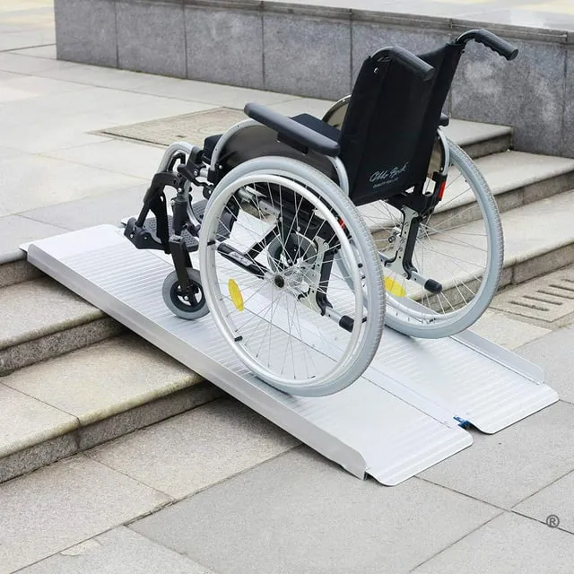 Deze handige opvouwbare oprijplaat is geschikt voor zeer veel doeleinden! Vanwege zijn extra brede uitvoering rijdt u uw scootmobiel of rolstoel gemakkelijk over elke stoeprand of drempel. Dankzij het kleine gewicht en het opvouwbare ontwerp van de oprijplaat is hij gemakkelijk hanteerbaar en eenvoudig mee te nemen. Opstaande randen aan weerszijde om te voorkomen dat u per ongeluk naast de oprijplaat terechtkomt.