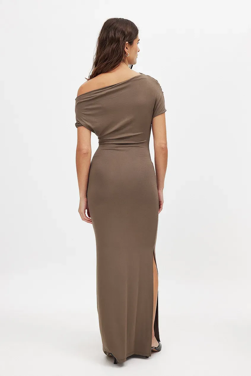 - Details: Off-shoulder ontwerp, subtiele tailleband