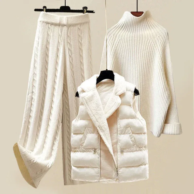 Deze complete set bestaat uit een zachte gebreide coltrui, een comfortabele kabelgebreide broek en een trendy puffervest. Perfect voor zowel binnen als buiten, biedt de Serena set een moeiteloze en stijlvolle look voor elke gelegenheid.