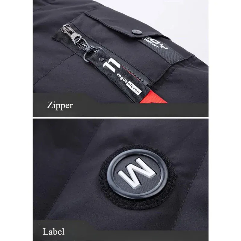 - Details: Verstelbare capuchon, borst- en zijzakken met rits, elastische manchetten