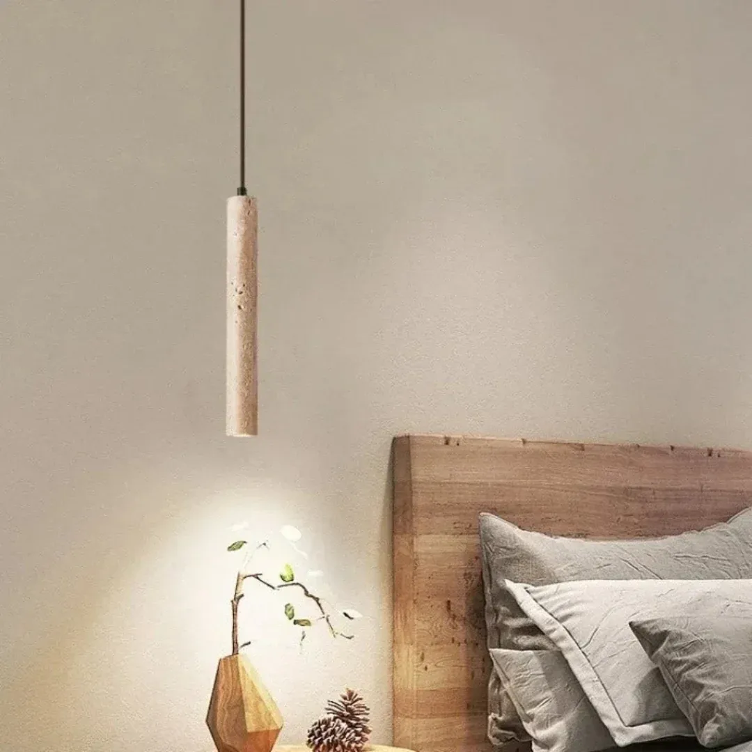 Gemaakt van authentiek travertijn, straalt de lamp een organische en tijdloze elegantie uit die harmonieert met diverse interieurstijlen. -